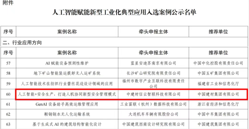 ? 2024年入選《人工智能賦能新型工業化典型應用入選案例公示名單》